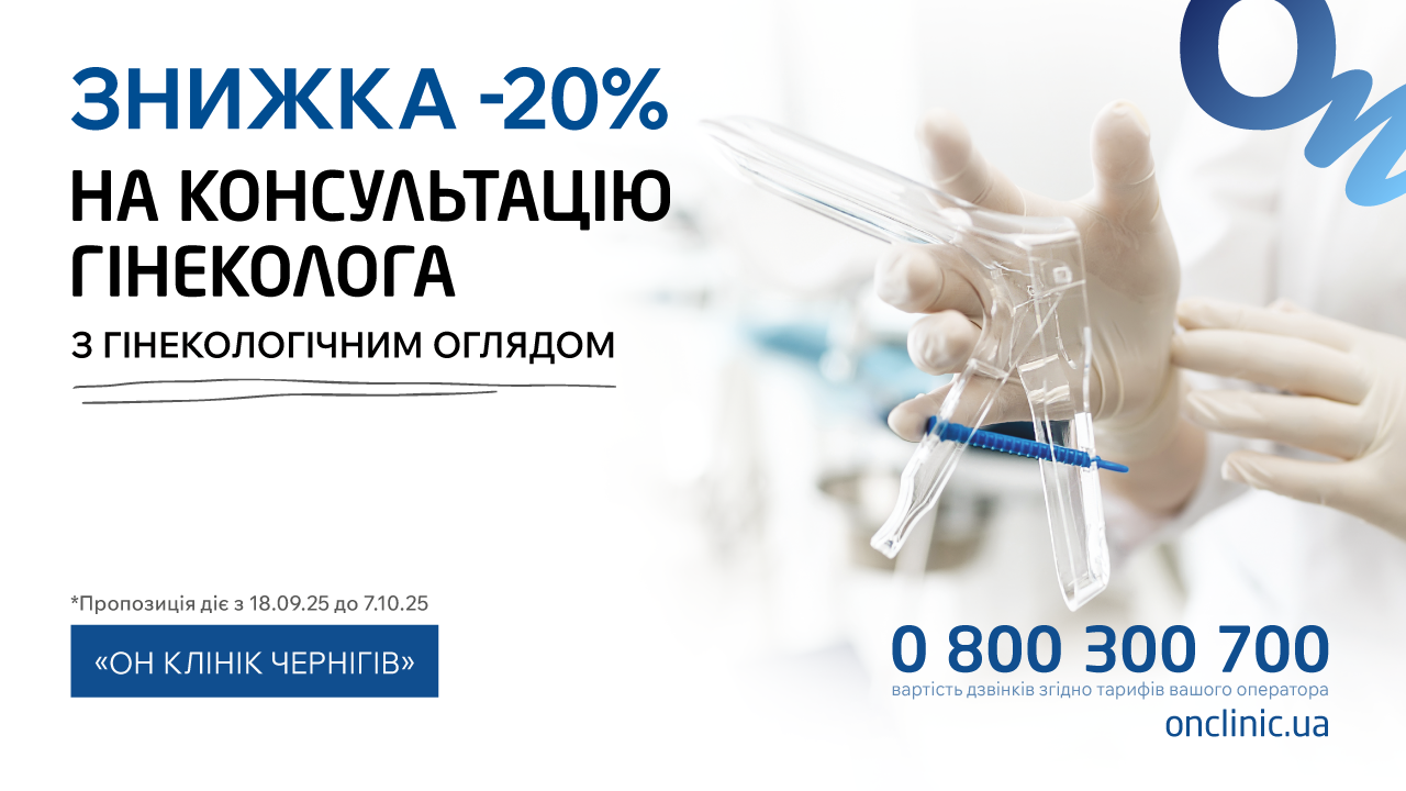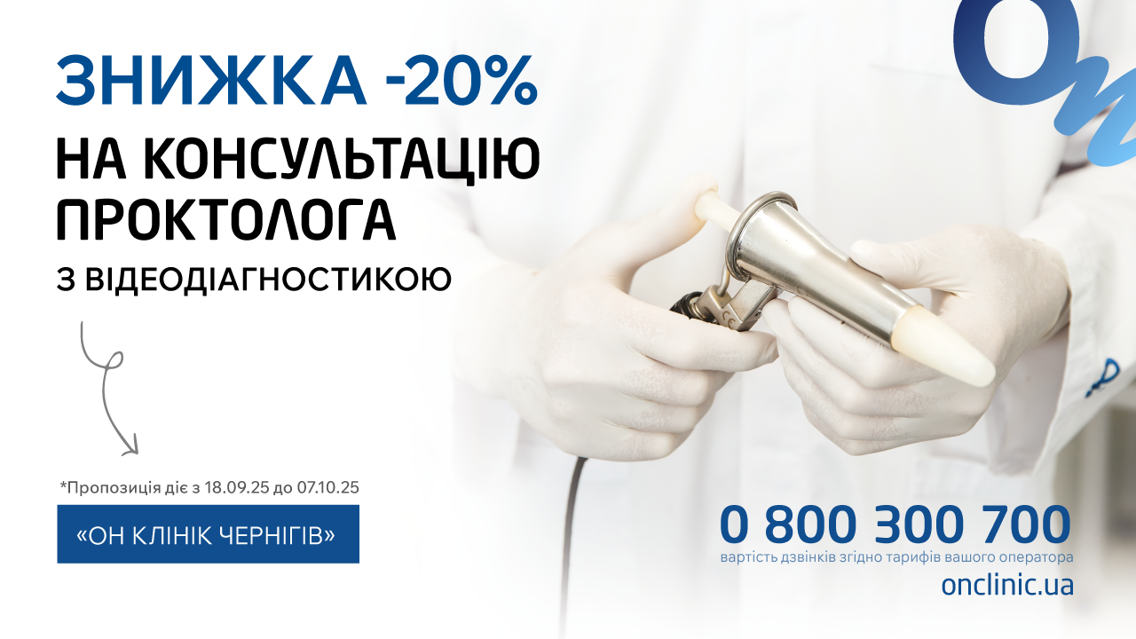 З 18 по 30 вересня 2025 року у медичному центрі «ОН Клінік Чернігів» діятиме спеціальна пропозиція — знижка 20% на прийом проктолога та гінеколога.