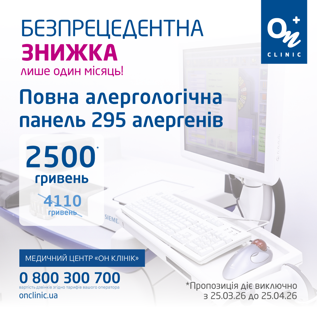 Повна алергопанель (295 алергенів) всього за 2500 грн (замість 4110 грн).
